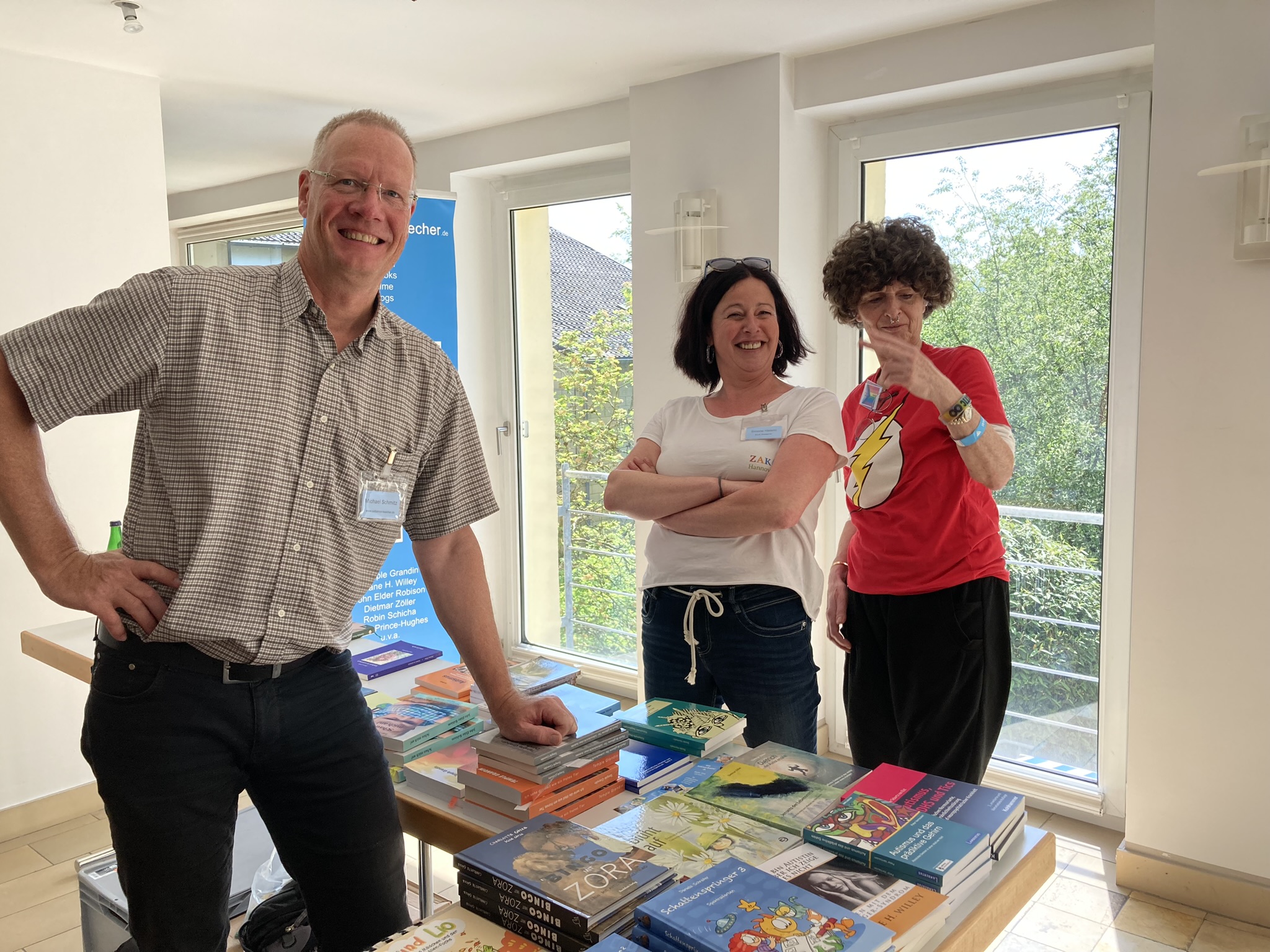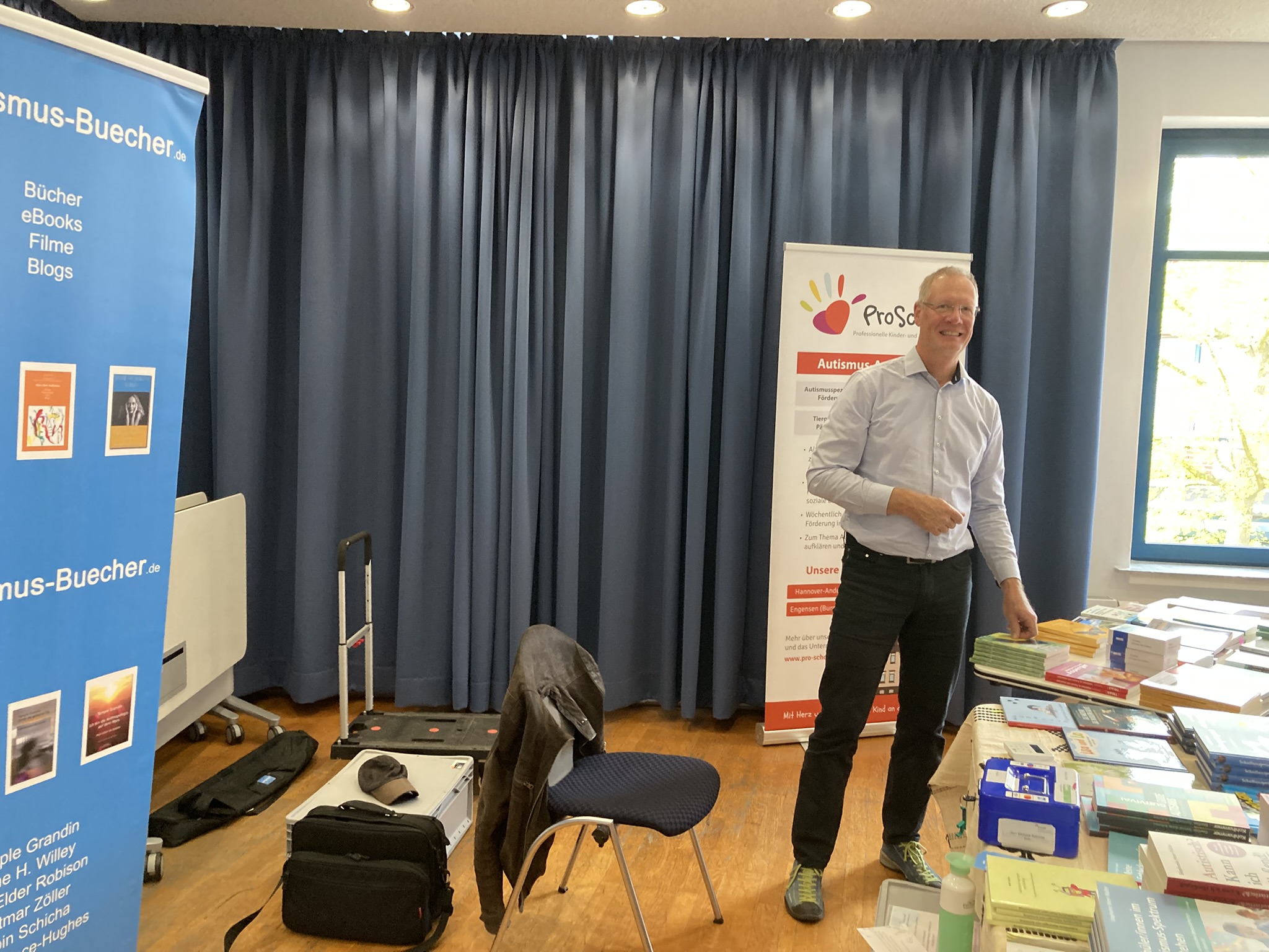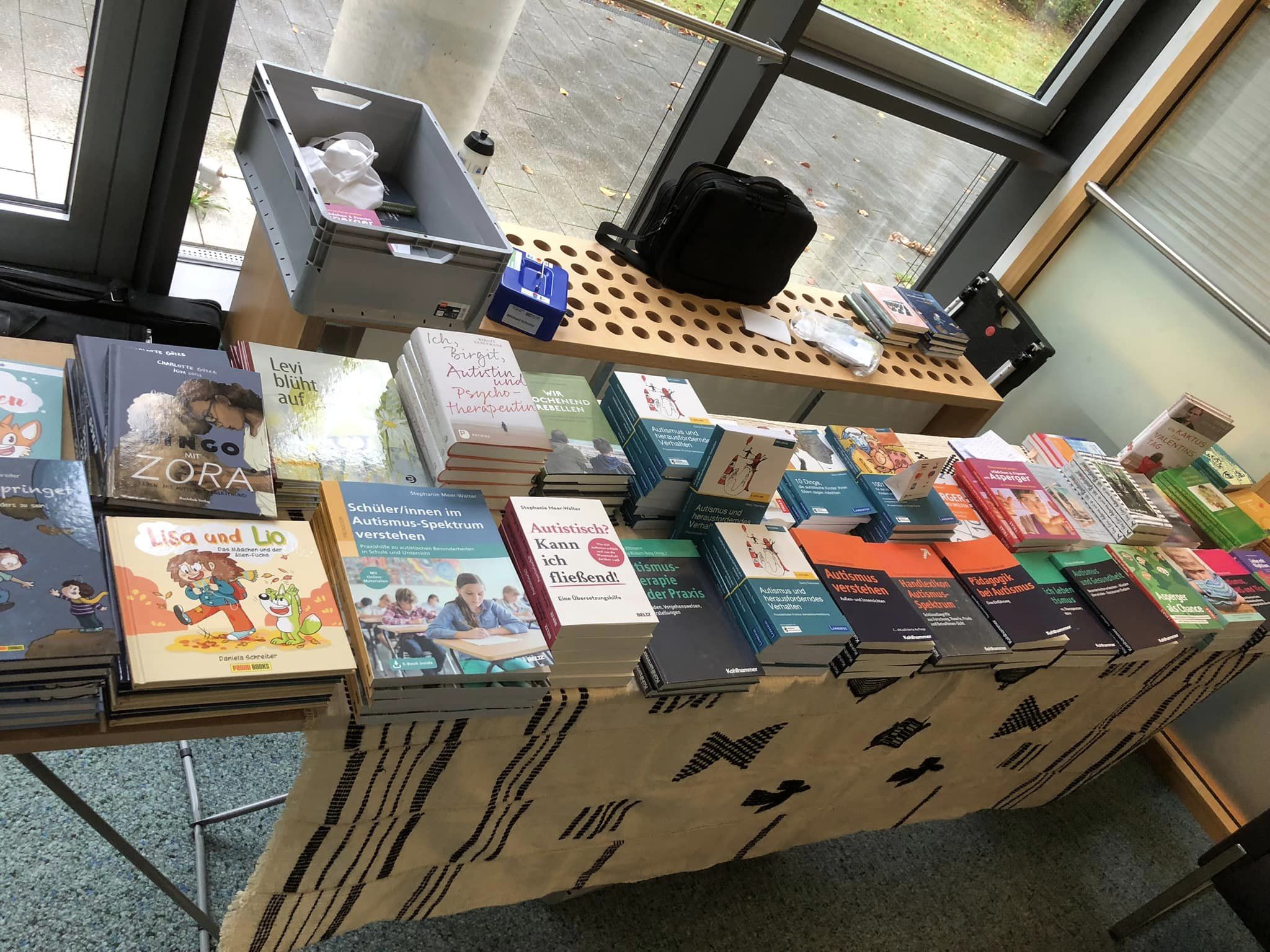 Sollten Sie sich selbst für eine Veranstaltung einen Büchertisch als Information und Pausengestaltung wünschen, nehmen Sie einfach Kontakt über autismus(at)t-online(punkt)de auf. Büchertische 2026: 11.2.: Lüchow-Dannenberg 26.2.: Walsrode 2.5.: Kassel 9.5.: Wuppertal 11.6.: Timmendorf 27.6.: Aspie e.V. Berlin 10.10.: Siegen 14.11.: Wuppertal Weitere Büchertische sind noch in der Terminierung. Büchertische 2025: 5.2.: Braunschweig 19.3.: Walsrode 27.4.: Hohnstein 3.5.: Wuppertal 7.5.: Isernhagen 5.6.: Timmendorf 28.6.: Aspie e.V. Berlin 15.11. Wolfsburg 29.11.: Wuppertal Isernhagen (2025) Mal etwas anderes: Büchertisch zum Thema "Harz" auf Burg Hohnstein Walsrode (2025) Braunschweig (2025) Bad Arolsen (2024) Aspies e.V. Berlin (2024) Aspies e.V. Berlin (2024) Mit Autorin Stephanie Meer-Walter in Wuppertal (2024) Mit Simone Hatami vom ZAK in Wuppertal (2024) Mit Autor Peter Schmidt in Berlin (2023) Viel los in Hameln (2023)