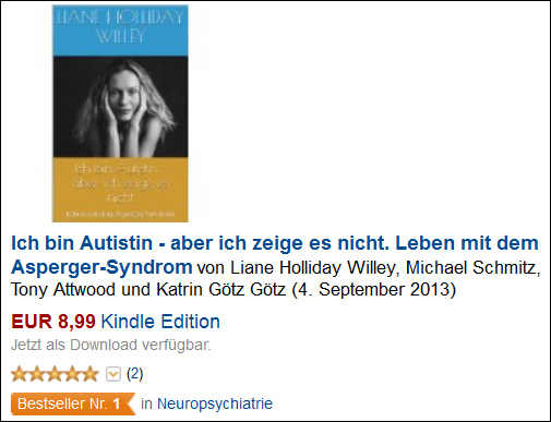 | Buchveröffentlichung, Englisch: Pretending to be Normal: Living with Asperger’s Syndrome. Die englische Ausgabe von "Ich bin Autistin - aber ich zeige es nicht" | |